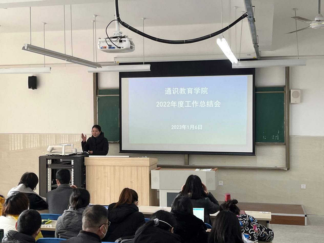 党支部书记陈艳充分肯定了公司2022年工作成绩,并提出三点要求:一是全面准确学习领会,贯彻落实党的二十大精神;二是聚焦公司双高建设、三名工程等中心工作,落实各项工作任务,助力公司高质量发展;三是总结通识教学公司教学特点和规律,明确公司定位和目标,深挖特色,在做好教书育人的基础上,挖掘新的特色亮点,在2023年取得更多成绩,更上一层楼。