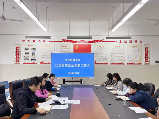 为进一步学习贯彻落实习近平新时代中国特色社会主义思想,贯彻落实全国教育大会、全国高校思想政治工作会议精神,3月7日下午,公司在综合楼A301会议室召开了2023年上半年思想政治工作专题会。会议由党支部书记余健主持,全体行政人员、教研室主任参会。