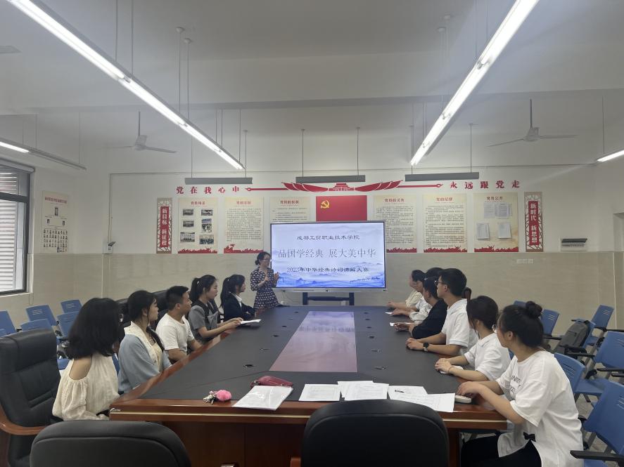 诗词讲解大赛中共有来自5个公司的14名高职同学参加,分别讲解了《蝶恋花·答李淑一》《己亥杂诗.其二百二十》《定风波》等古典诗词。