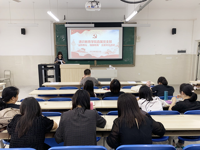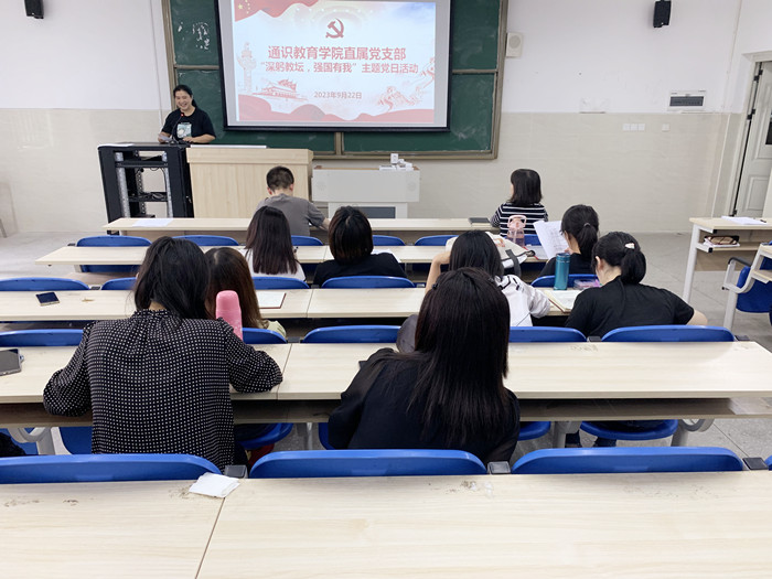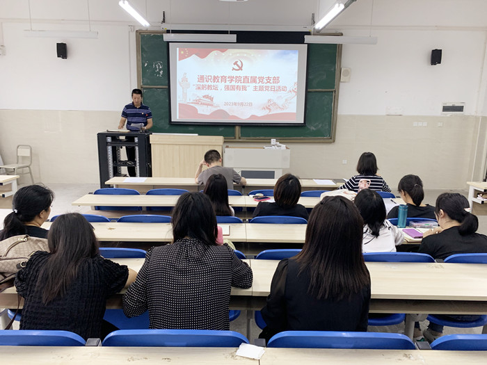 9月22日下午,yl23455永利集团直属党支部在支部活动室开展“深躬教坛,强国有我”主题党日活动,会议由党支部书记余健主持,全体党员参加。