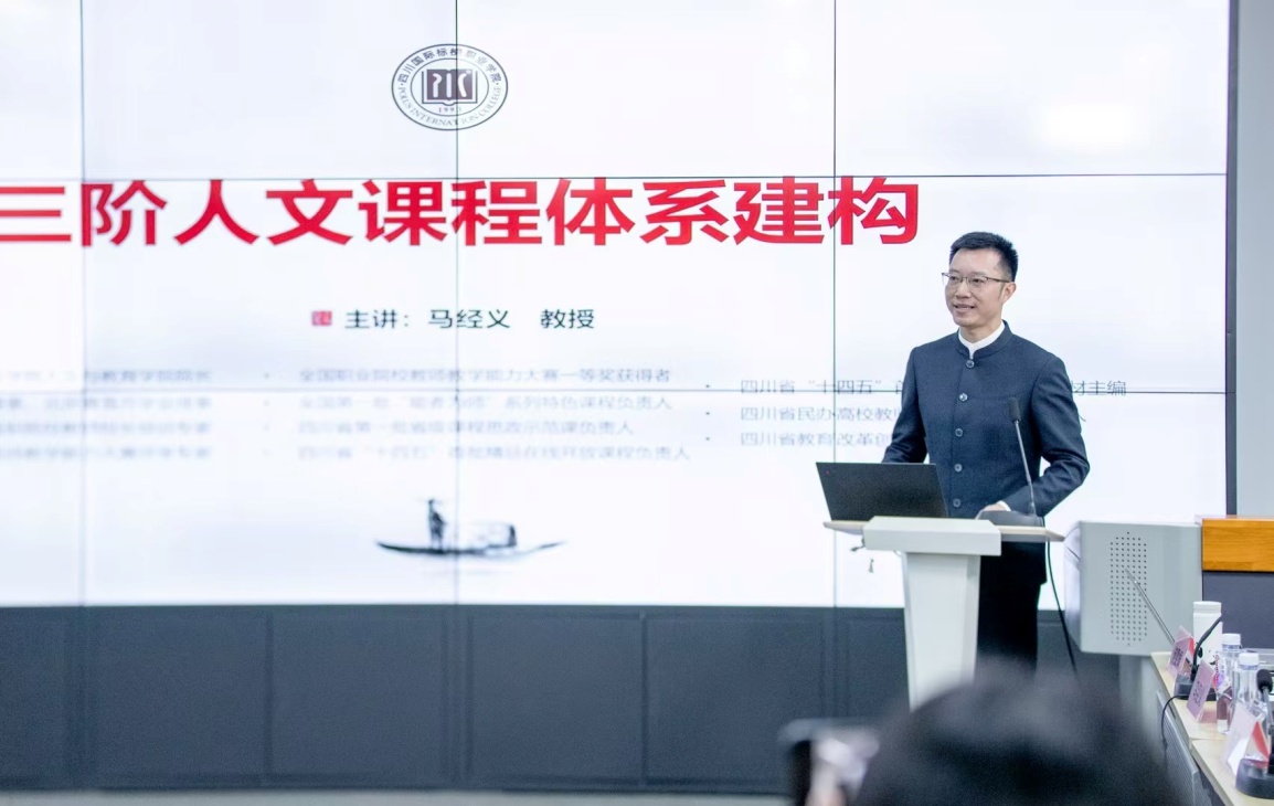 交流会上,四川文化产业职业公司公司党委委员、副经理陈敬贵代表公司致欢迎辞,并以当好“灵魂摆渡人”和“传道授业者”来生动阐述通识教育在职业教育中的关键地位。他鼓励通识教师要培养员工成为既具有扎实专业技能,又拥有深厚人文底蕴、能够适应社会发展需求的高素质人才。《大学语文》教研室主任何雯娟老师立足三教改革和三全育人思政大格局的总体要求,提出“文道合一,文技共进”的课程理念,从课程设置、教学方法、资源建设及员工社团等方面详细阐述了在《大学语文》课程建设中的探索与实践,分享了人工智能赋能课程数字化方面的经验及线上线下混合式教学的做法。