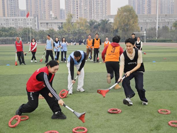 YOU.FO飞环作为源自欧洲的创新运动项目,凭借软质飞环设计的安全性、轻量化操作的普适性,兼具趣味性与运动挑战性,既适配校园场景下不同年龄段师生的参与需求,又能在运动中锻炼专注力、协调性与反应能力。活动期间,来自成都快乐运动集团的专业教练围绕飞环投掷、精准接盘等核心技能开展系统讲解,通过 “理论示范 + 分组实操” 的模式,帮助师生快速掌握动作要领。在实操环节,师生们以小组为单位分组体验,从初次尝试的小心翼翼到熟练互动的默契配合,在一次次投掷与衔接中感受运动乐趣,在协作交流中增进团队凝聚力。